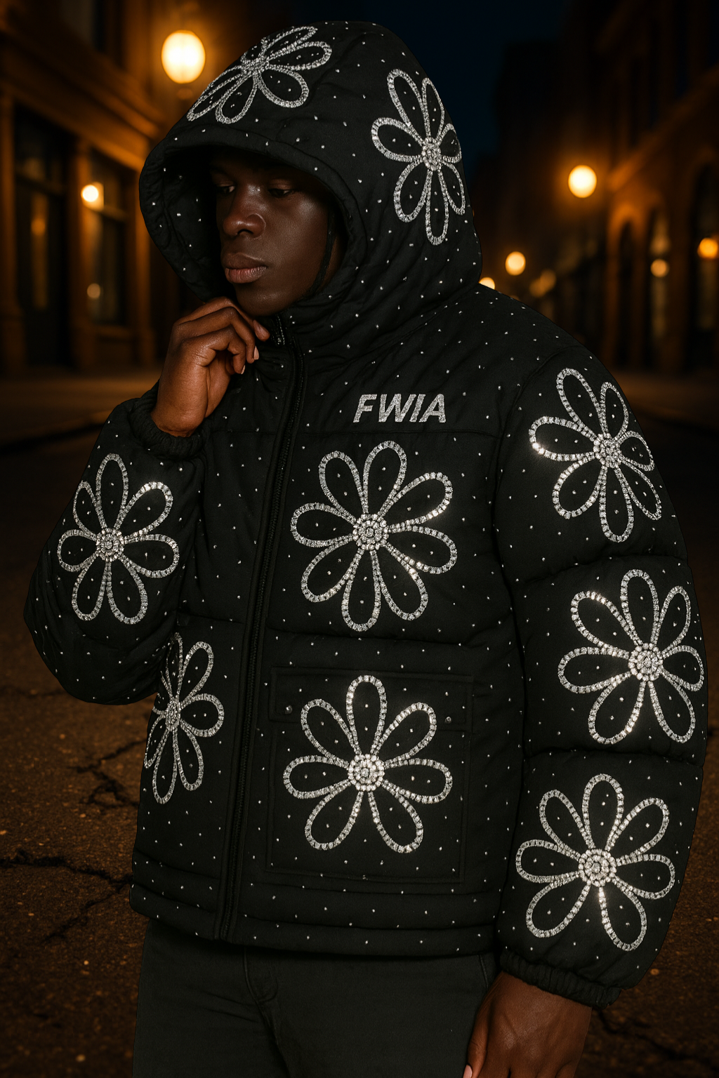 Flower While I'm Alive "Rhinestone" Puffer Coat
